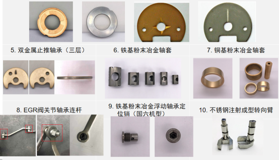 長沙波德冶金材料有限公司主要產(chǎn)品包括止推軸承、浮動軸承支撐套、止推軸承擋板、止推墊片、含油軸承等,主要應(yīng)用車用、船用、坦克和步兵戰(zhàn)車等三大應(yīng)用方向的渦輪增壓器粉末冶金軸承和黃銅合金軸承上。如下圖所示: