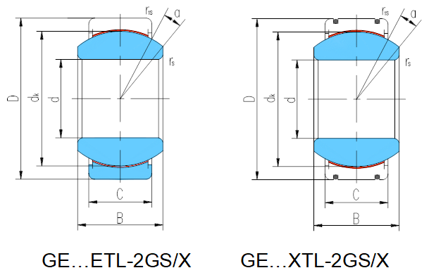 產(chǎn)品特點(diǎn):外圈有一道軸向縫,材料為不銹鋼,淬火,球面粘貼PTFE編織物;內(nèi)圈材料為不銹鋼,淬火。型號后置代號為XT,表示外圈沿軸向剖分成兩半,用鎖圈固定。