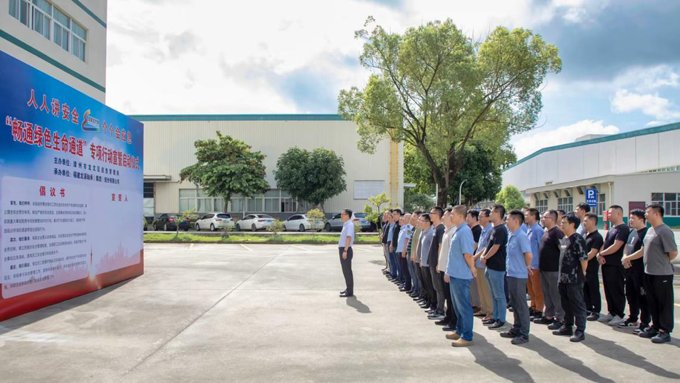 2023年6月30日,龍軸集團開展“暢通綠色生命通道”專項行動宣誓儀式暨滅火和應急疏散預案演練活動。此次活動由公司與漳州市龍文區應急管理局聯合舉辦。公司黨委副書記、總經理陳志雄、黨委委員、副總經理張逸青出席,各部室、車間代表參加活動。
