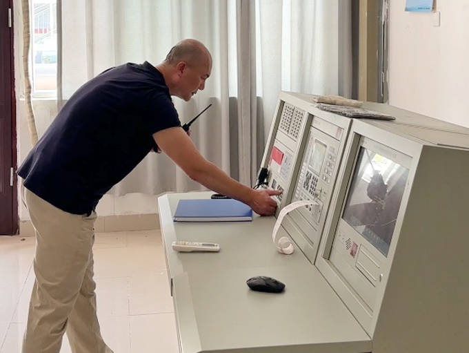 ▲值班人員接警并確認火情后,立即啟動消防廣播,發出疏散指令