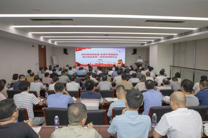 6月26日,集團(tuán)黨委書記、董事長陳晉輝以《學(xué)紀(jì)明責(zé)促發(fā)展、忠誠干凈擔(dān)使命,奮力建設(shè)世界一流專精特新企業(yè)》為題講授專題黨課。集團(tuán)高管、中層管理人員、權(quán)屬企業(yè)高管參加。