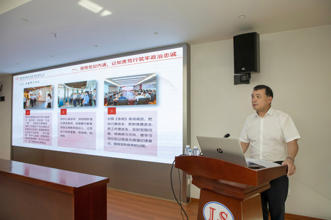 陳晉輝從“領(lǐng)悟黨紀(jì)內(nèi)涵,以知責(zé)篤行筑牢政治忠誠”“明晰紀(jì)律要求,以明責(zé)敢為落實主體責(zé)任”“涵養(yǎng)清正風(fēng)氣,以擔(dān)責(zé)奮進(jìn)推動公司發(fā)展”等三方面進(jìn)行了深入闡述。他指出,黨的紀(jì)律是黨的各級組織和全體黨員必須遵守的行為規(guī)則,全面深入學(xué)習(xí)黨的紀(jì)律是每一名黨員和領(lǐng)導(dǎo)干部必須完成的政治任務(wù)。公司黨員干部要堅持“學(xué)”在先、“悟”在深、“踐”在實,真正領(lǐng)會黨的紀(jì)律的實質(zhì)和內(nèi)在要求,進(jìn)一步強(qiáng)化紀(jì)律意識、加強(qiáng)自我約束、提高免疫能力,增強(qiáng)政治定力、紀(jì)律定力、道德定力、抵腐定力。
