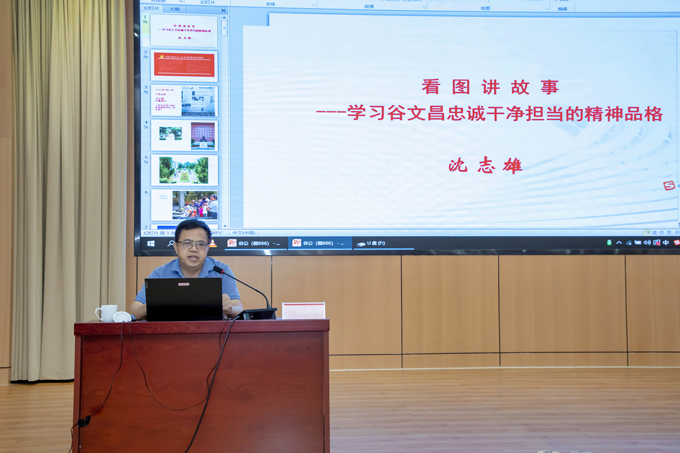 沈志雄老師圍繞“忠誠是谷文昌精神品格最厚重的基石”“干凈是谷文昌精神品格最自然的底色”“擔當是谷文昌精神品格最耀眼的華章”三個方面系統講述了谷文昌同志生平事跡,通過一幅幅珍貴的影像資料和一個個生動的事例,大家更全面地理解谷文昌精神品格的內涵,受到了深刻的精神洗禮。