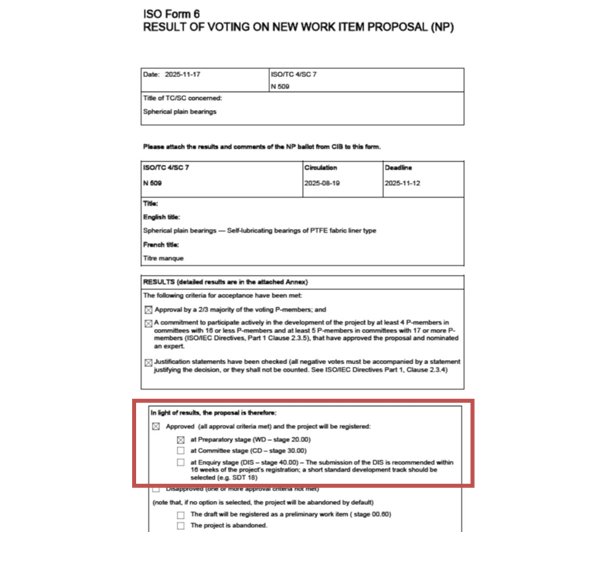 近日,由龍軸集團(tuán)主導(dǎo)的ISO/NP 25994:Spherical plain bearings-self-lubricating bearings of PTFE fabric liner type(《關(guān)節(jié)軸承 PTFE織物襯墊型自潤滑軸承》)國際標(biāo)準(zhǔn)提案,經(jīng)過ISO/TC4/SC7組織的新工作項(xiàng)目提案(NP)投票環(huán)節(jié),已正式獲批立項(xiàng),進(jìn)入正式起草階段。這是我國牽頭立項(xiàng)成功的首份自潤滑軸承國際標(biāo)準(zhǔn),同時(shí)也是全球首份針對(duì)PTFE織物襯墊型自潤滑軸承的產(chǎn)品標(biāo)準(zhǔn),標(biāo)志著我國在自潤滑軸承高端技術(shù)領(lǐng)域?qū)崿F(xiàn)了從“技術(shù)跟隨”到“標(biāo)準(zhǔn)引領(lǐng)”的歷史性突破,具有里程碑的標(biāo)志性意義。