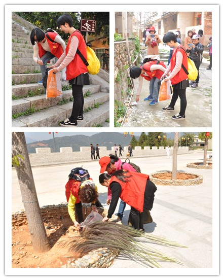 在活動中,志愿者在撿拾垃圾的同時,還向村民、游客進行環保宣講,號召大家一起行動起來,為保護美好家園而努力。