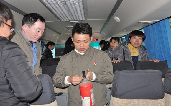 首先由大巴車駕駛員講解大巴應急門、車頂窗的開啟方法、安全錘的使用方法及滅火器擺放位置,然后由環安部安全員講解滅火器的操作及使用規范和后窗玻璃逃生方法。現場演練模擬公司通勤廠車因故障著火并迅速蔓延,車廂內濃煙滾滾,車門因電氣故障無法打開,大巴駕駛員立即打開應急車門,組織乘車員工有序撤離,同時向綜合部主管報告事故情況。綜合部主管判斷現場情況后,立即啟動《綜合應急預案》,組織各應急救援小組立即趕赴現場,展開應急響應。